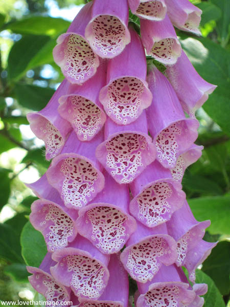 I love tall flowers because you don’t have to bend down to see them closely and they look good from a distance, and ones that bloom in the shade, reseed themselves, and even appeal to hummingbirds are especially wonderful. These foxgloves are taller than I am, which is not too hard, and their graceful, tall spikes are the true high point of my garden right now.