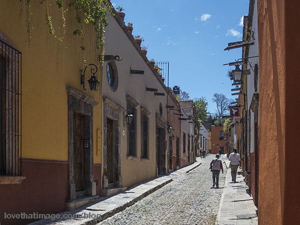 The tiny streets of San Miguel de Allende are much better for pedestrians than auto traffic. All the buildings in the center of town must be painted in earth tones.