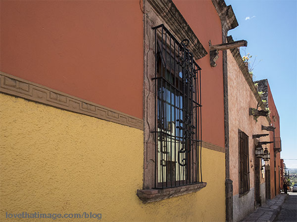 Rose and earth tones, and wrought iron railings in San Miguel