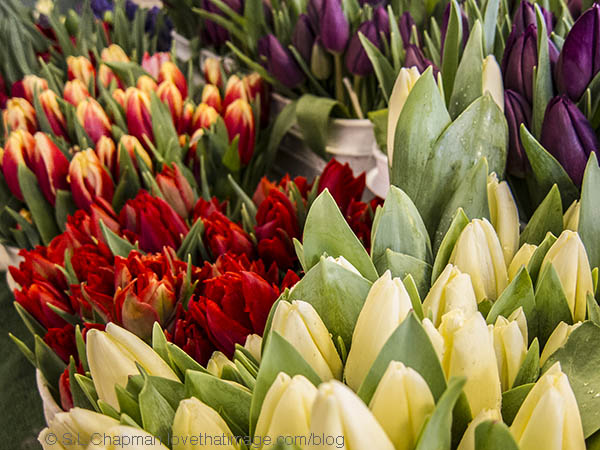 Seattle’s Pike Place Market sometimes, amazingly, has tulips in January.