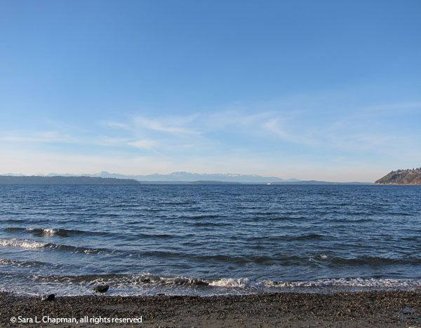 It’s been pretty darn cloudy and wet, and dark, but there is still scenic delight if you hunt for it. OK, it’s subtle, but still lovely. Here’s a recent view of Puget Sound from the Normandy Park cove beach.