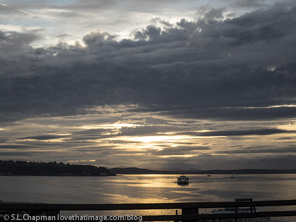 Dramatic sky over Puget Sound, looking west from the viaduct in Seattle