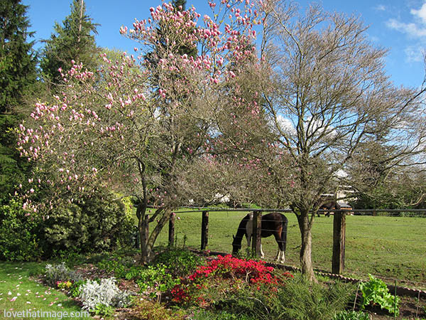 Well, the pasture behind my yard (the between the two fences) has been sold, and a house will be built on it this summer, we are told. Sigh. The horses are gone. Things change. Here is what it looked like from my patio, today.
